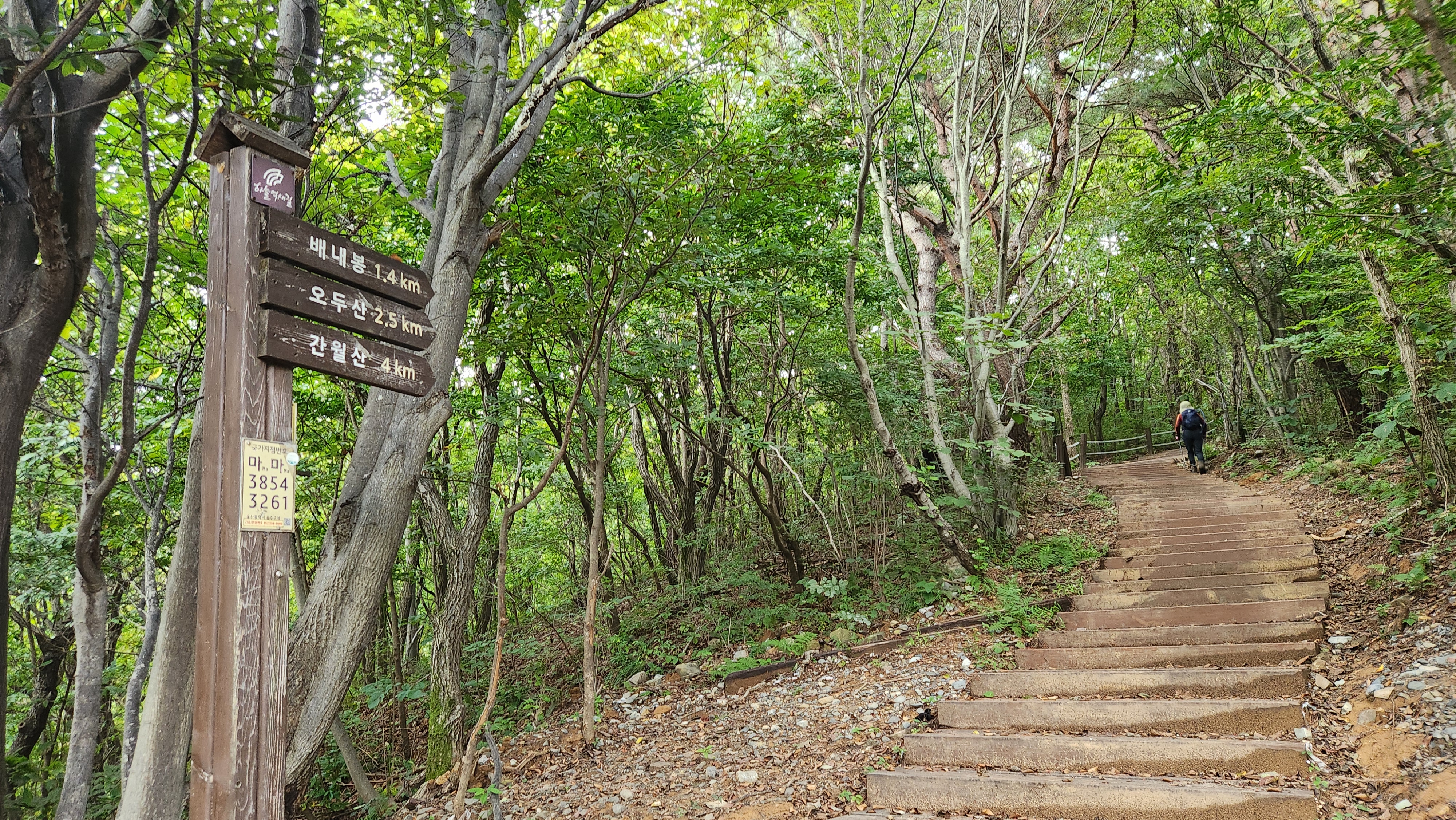 | 09:27 - 배내고개정상정류장 버스에서 내려 위도로로 올라간다...화장실앞 들머리에서 산행준비... 09:34 - 산행준비후 출발... 09:37 - 이정표-간월산 4... 09:40 - 이정표-배내봉쪽으로... 09:53 - 배내봉 아람약수터... 10:07 - 능선에 올라선다...천화비리...의자마다 산행인들이 쉬고있어 그대로 진행... |