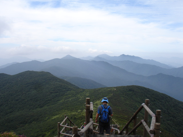 ▼삿갓봉 방면~저 ~아래에 삿갓골재대피소가 있다