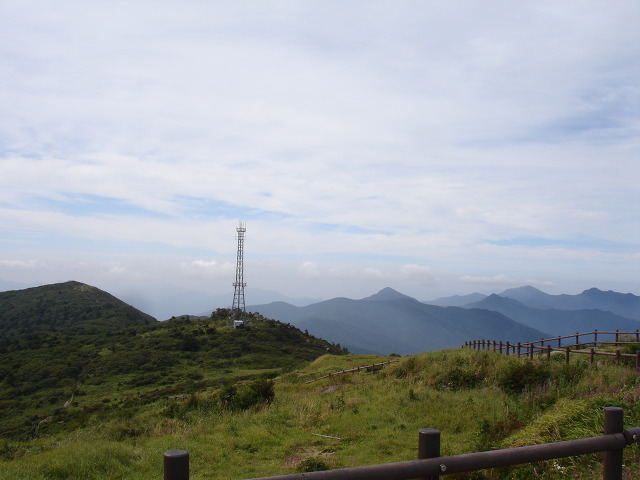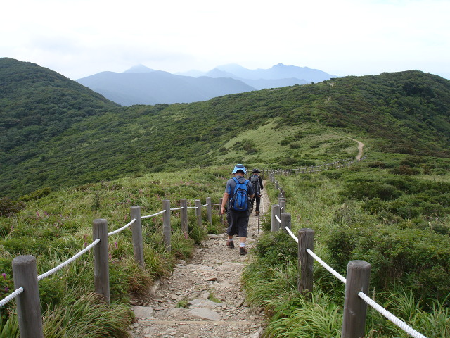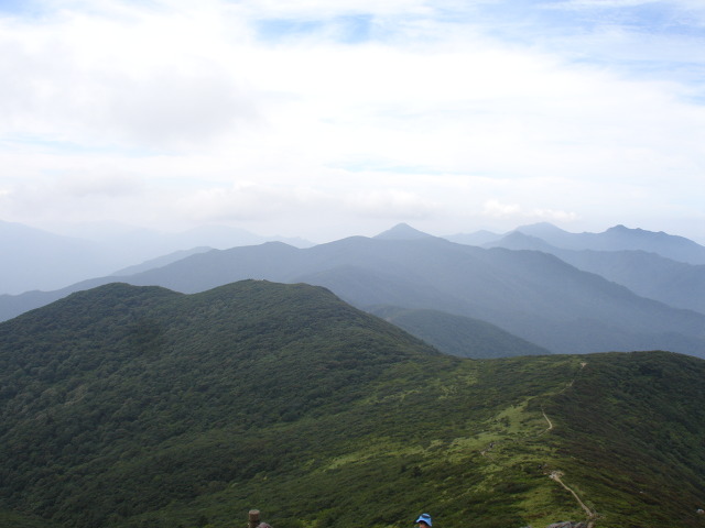 ▼ 중봉에서 덕유평전으로..저 ~멀리 무룡산,삿갓봉,남덕유산,서봉 보인다