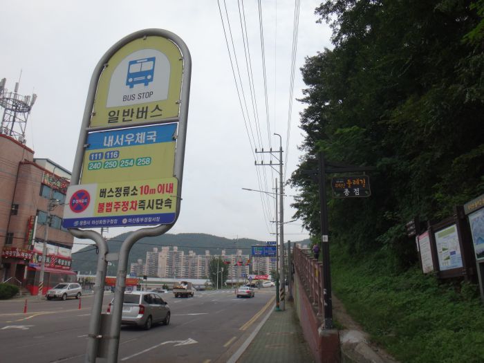 여기서 110번 중리역이나...111번을 타고 내서우채국에서 내리면 된다... 10:26 - 110번을 타고 출발한다... 10:40 - 중리역정류장 도착... 횡단보도를 건너 들머리쪽으로 간다... 10:43 - 내서우체국 건너편정류장...들머리에서 산행준비를 한다...