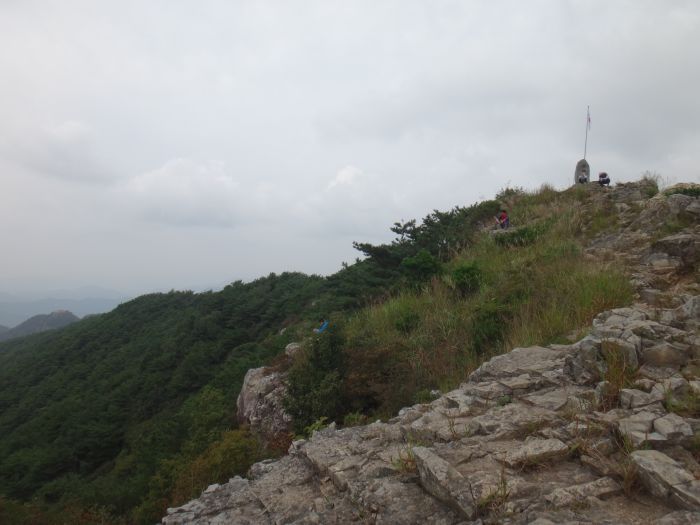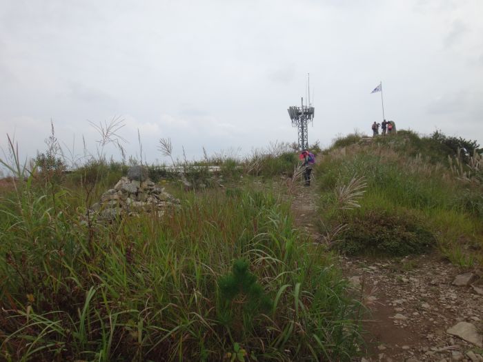 정상석을 터치한다...옆에 태극기가 달려 있다...아래쪽엔 안테나탑... 헬기장도 보고 전망도 보고 이리저리 안내판도 본다...