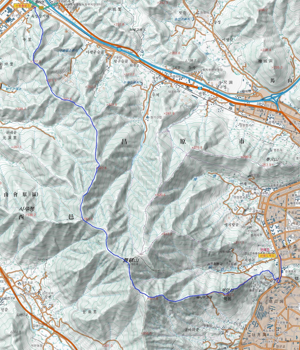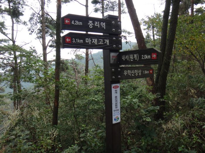 간 : 중리역~마재갈림길~시루바위갈림길~무학산~학봉갈림길~배나무고개~학봉~서원곡입구