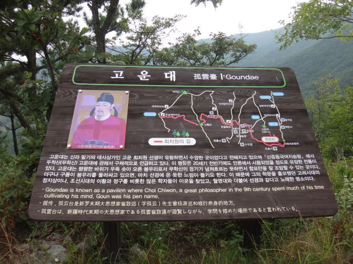 고운대 안내판이 설치되어 있고 바위에 글씨쓴 정상석이 있다....