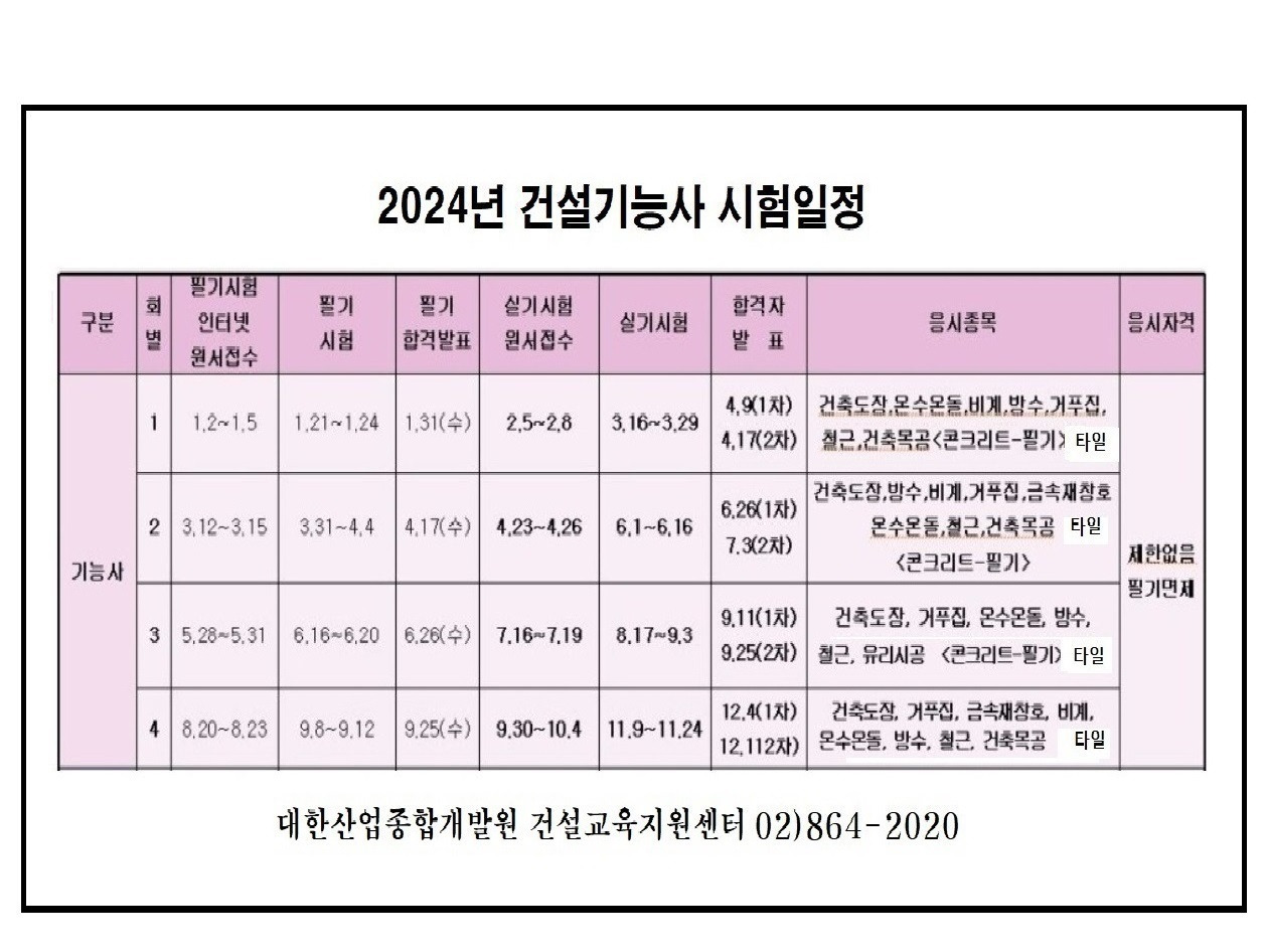 거푸집기능사 뿐만 아니라 건설분야 기능사 방수기능사 , 철근기능사