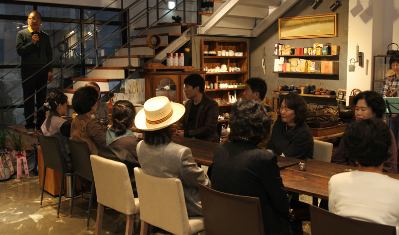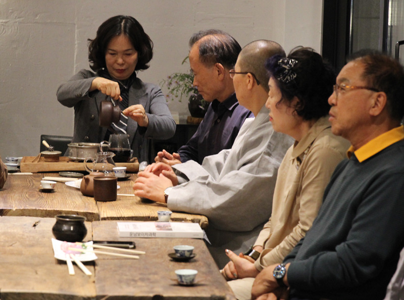 찻자리는 T차로 연결되어 많은 사람들이 참석했다.