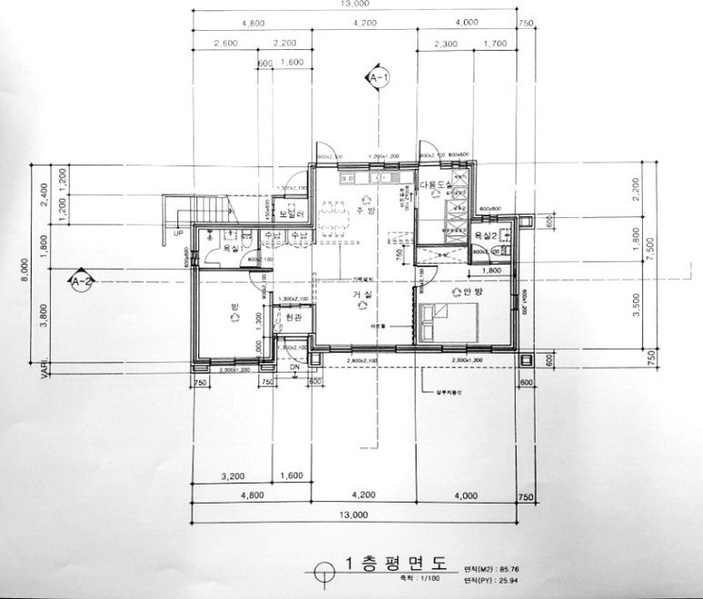 용인 40평 조립식주택설계도면을 건축주와 협의하여 동민하우징 사무실에서 그리고..