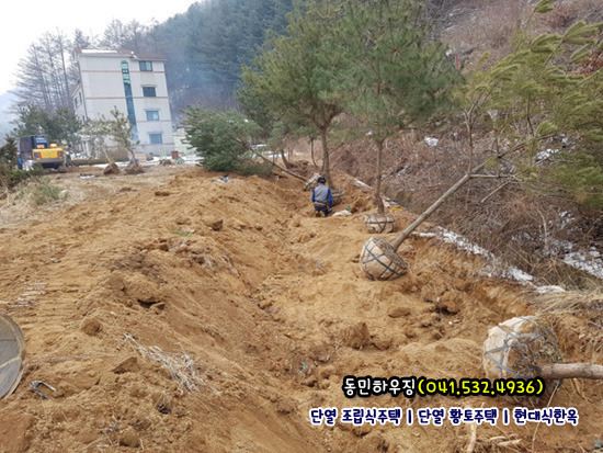 용인 40평 조립식주택시공부지에 있던 기존의 조경수를 옮겨 심고