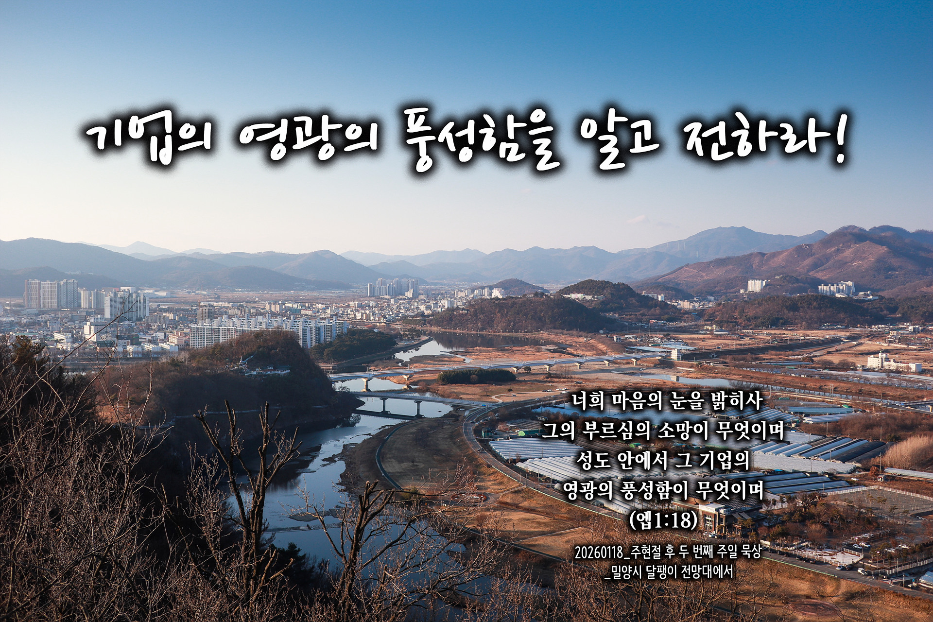 PICTURE&TEXT_20260118_기업의 영광의 풍성함을 알고 전하라!_에베소서 1장 18절_주현절 후 두 번째 주일 묵상_밀양시