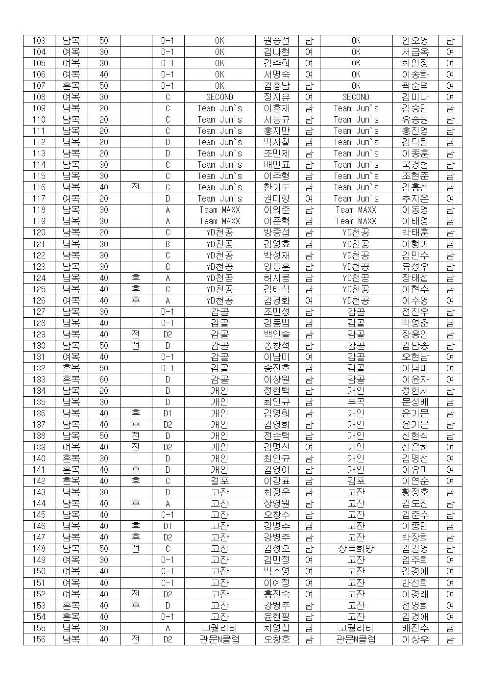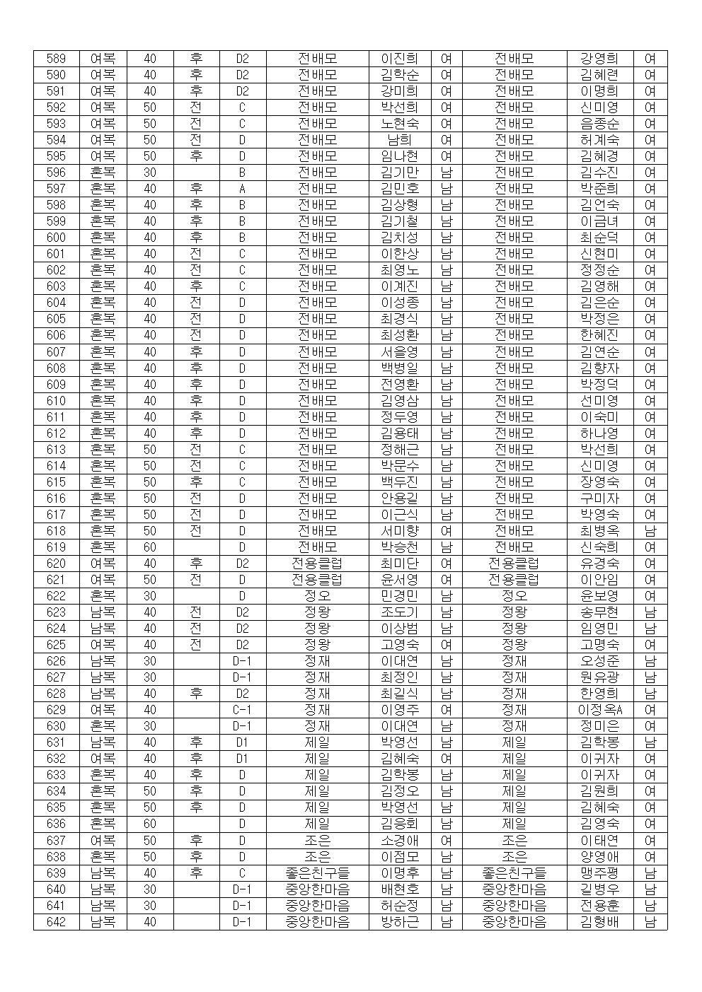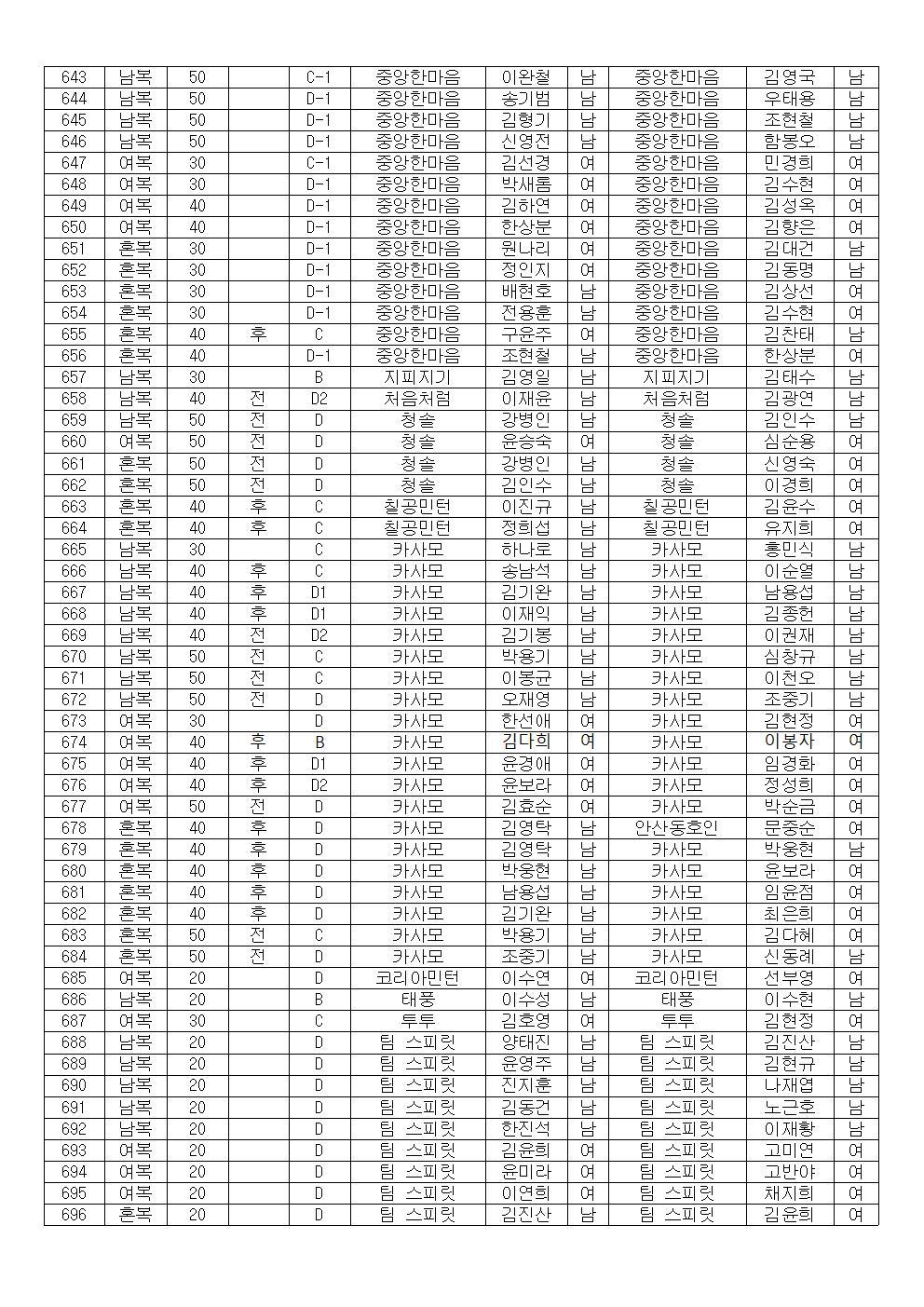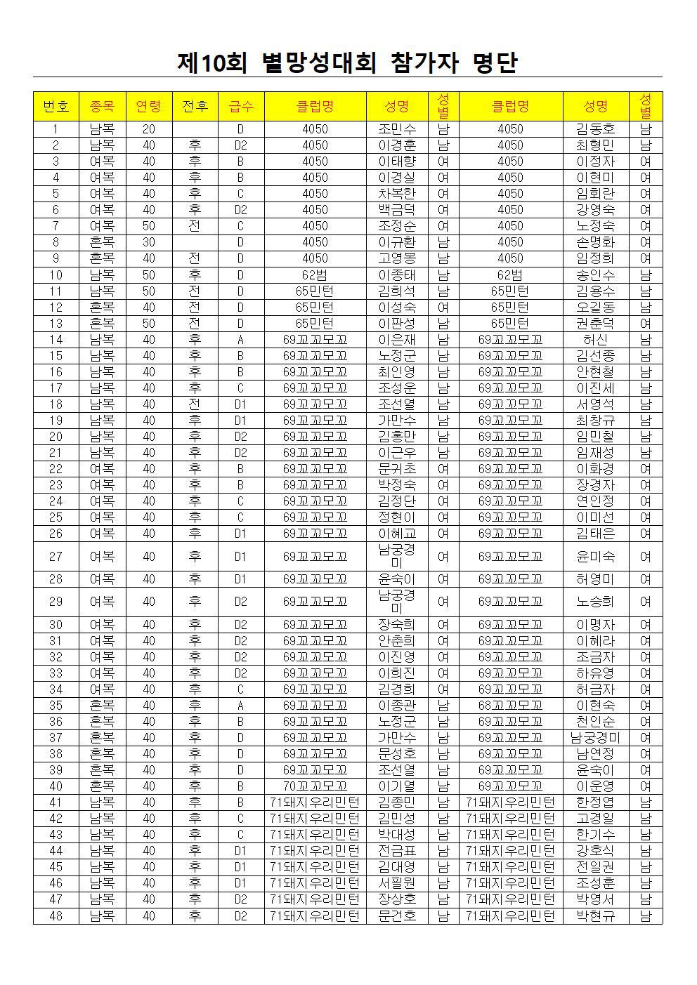 -. 본인 이름 확인, 급수 확인, 출전종목 확인(남복, 여복, 혼복, D1, D2 등)