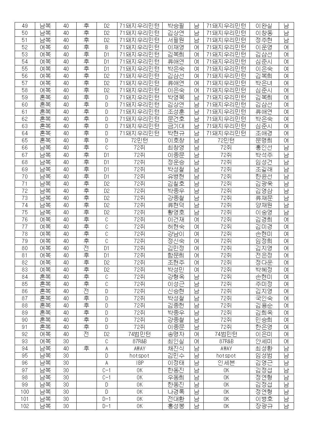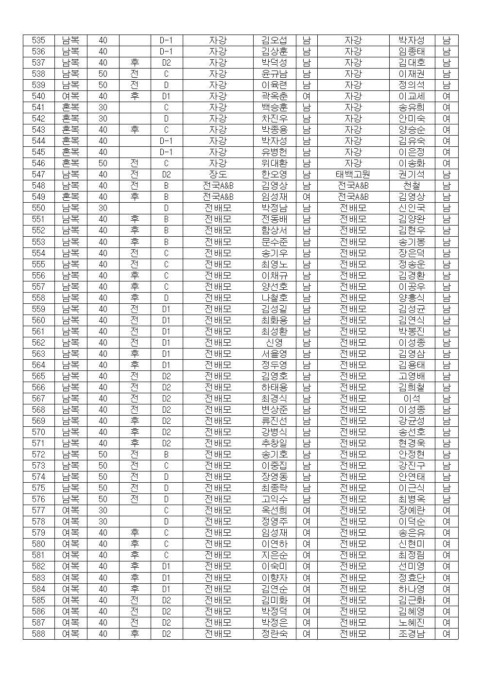 ※ 대회의 원활한 진행을 위하여 부정선수가 있다고 판단되면 내일 오전 명단 확인 기간에 꼭 말씀해 주시고, 대회 기간 내에는 부정선수(대리출전 제외)에 대한 이의는 받아들이지 않도록 하겠습니다.