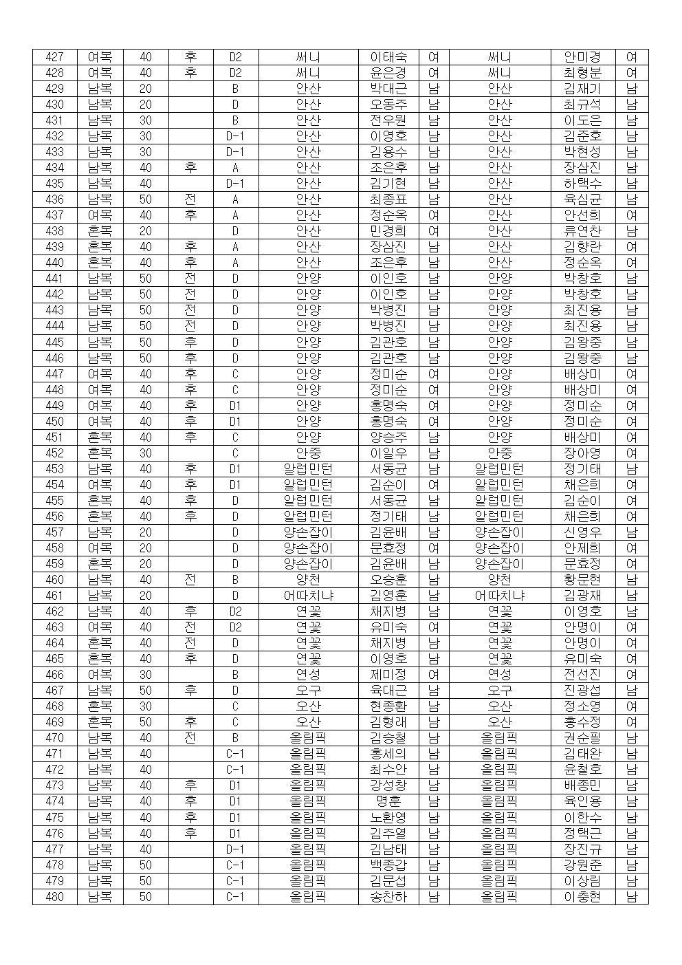 별망성 전국대회 참가자명단을 올립니다. 그림파일과 엑셀파일을 함께 올려 드리오니 내일 오전 11시까지 꼭 확인하시고 수정사항이 있으시면 안산시 사무국장에게 문자로 연락바랍니다. 전화는 받기가 어려운 상황일 수 있으니 꼭 문자로 부탁드립니다.