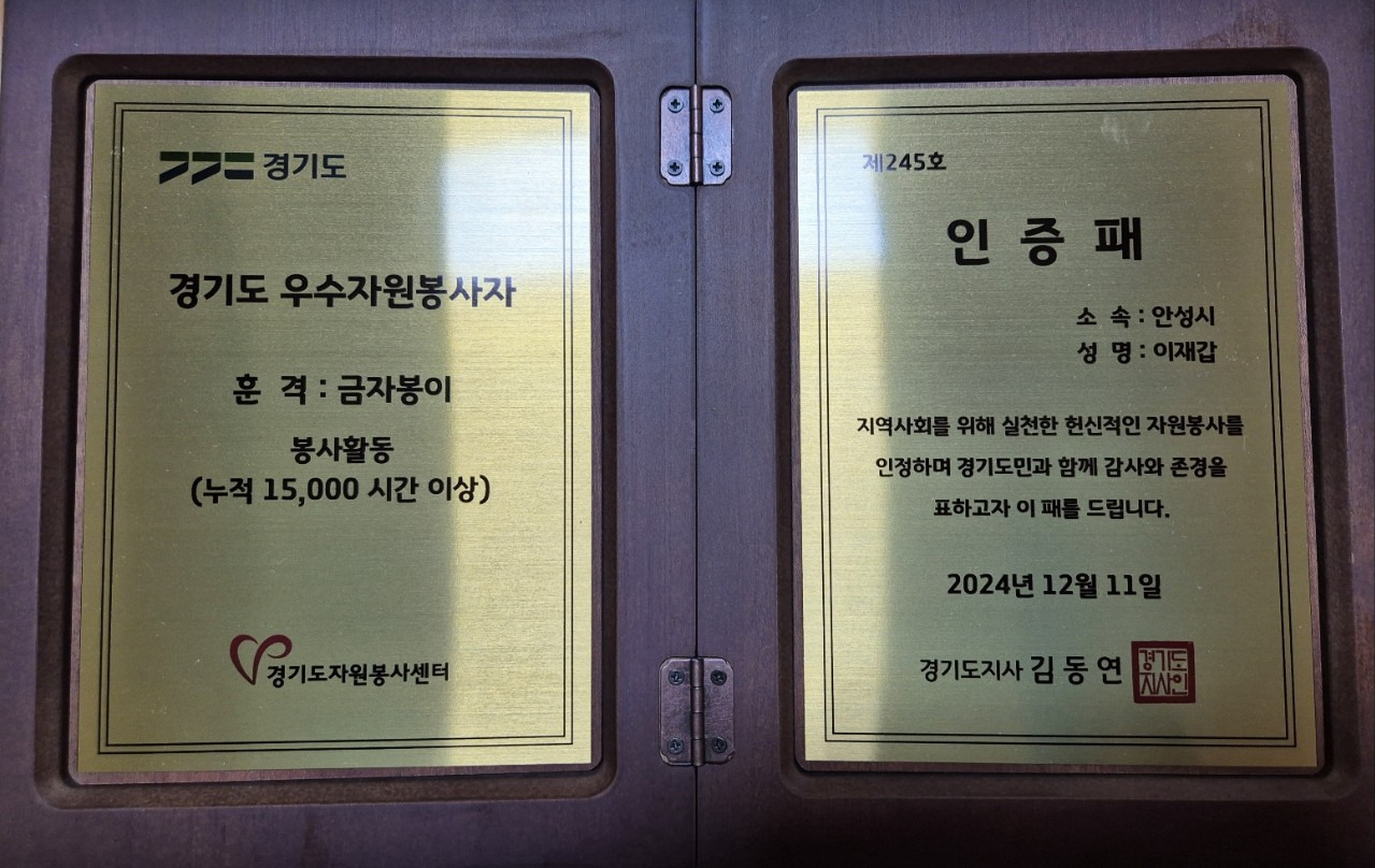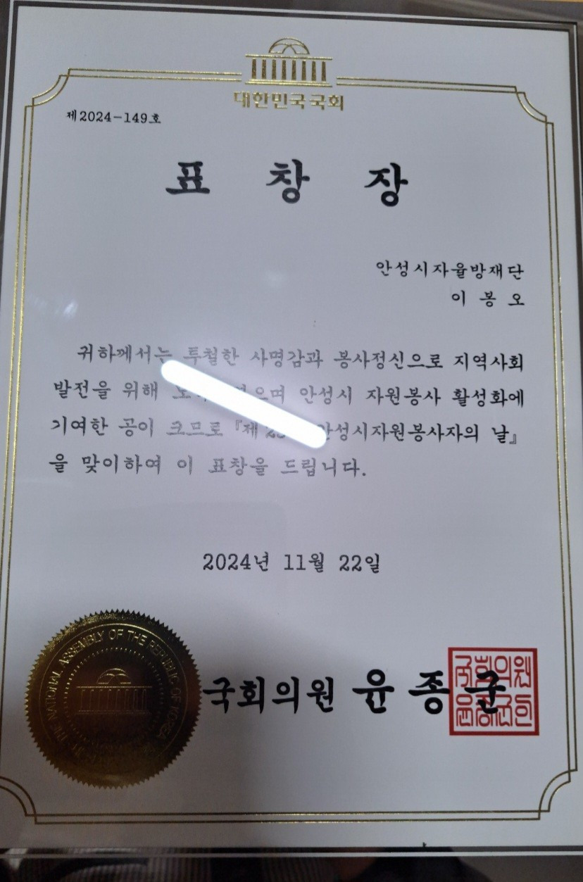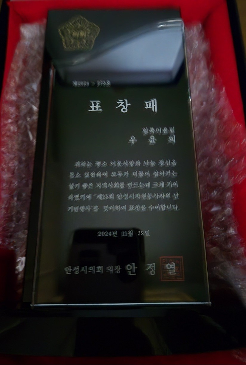 제25회 안성시 자원봉사자의 날 기념 표창 수상 11/22(금)