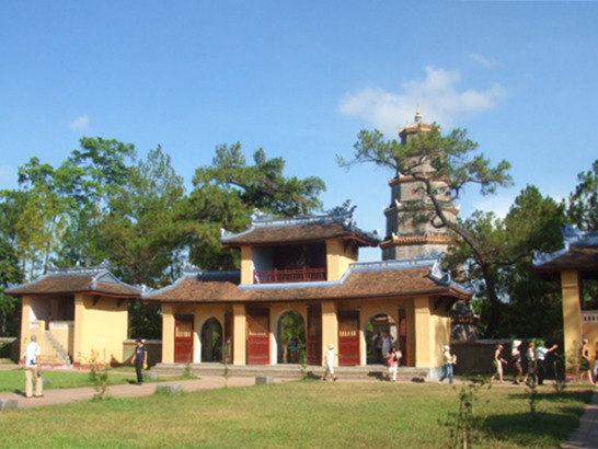 티엔무 사원(Chùa Thiên Mụ) 후에의 공식적인 상징...? 그곳은 어디일까? 관광객이나 외국인의 경우에는 왕궁이 아니겠는가 하겠지만 아니다. 현지인들은 티엔무 사원을 말한다. 이 사원은 강을 따라 도심에서 멀지 않은 거리에 있는 후에에서 가장 큰 사원이며 이 도시의 공식 상징이기도 하다. 티엔무 사원은 시내 중심지에서 4km. 후언강변 선착장에서 가까우며 다른 곳과는 달리 입장료가 없다. 티엔무 사원은 1601년에 창건되었으며 이곳에는 21m의 7층 팔각탑이 있으며 이 탑은 투난(자비)의 탑이라 하여 행복과 하늘의 은총을 의미하고 있다. 탑의 각층마다 부처가 모셔져 있고 탑 옆에는 2톤의 무게를 지닌 범종이 있어 그 울림은 시내까지 울린다고 한다. 탑 옆에는 이곳의 역사가 기록되어져 있는 비석이 있으며 뒤뜰에는 1963년 불교 탄압에 저항하여 사이공까지 내려가 분신 자살을 기도했던 이 사원의 주지승이 타고 있었다는 자동차가 전시되고 있다. 이곳을 지나가면 부처를 모신 다이훈 사가 있으며 이곳의 청동불상은 떠이선 당을 물리치고 자몽 활제를 도왔던 포르두갈 인인 진데라 크로이스가 만든 것으로 알려지고 있다.