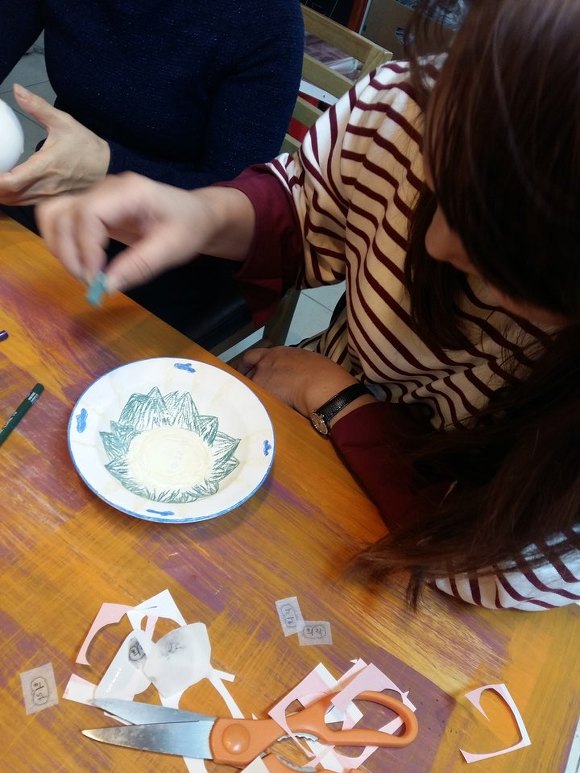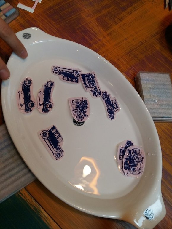 분리된 전사지 스티커를 도자기에 붙이고 구워주면 된답니다!
