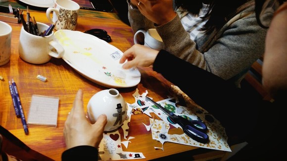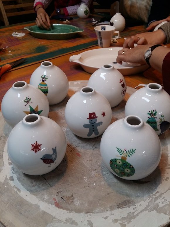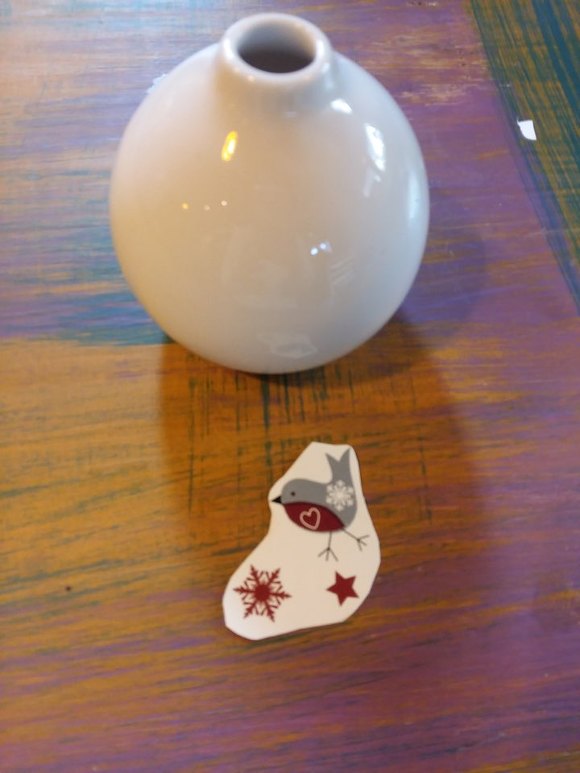 완성된 도자기 기물에 X-MAS 분위기가 물씬 풍기는 전사지를 붙이면 끝!