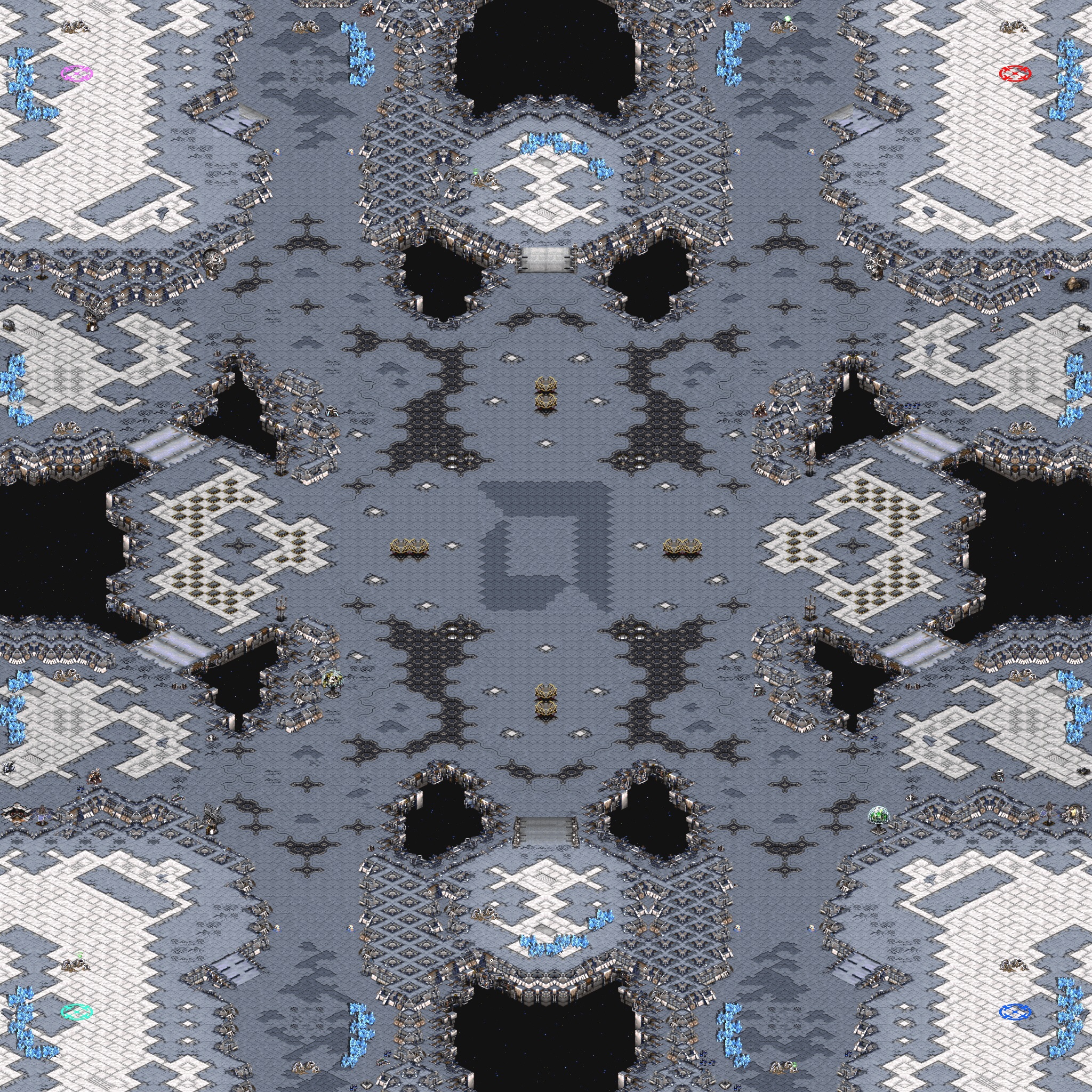 배럭 크기의 건물(4×3)은 정중앙 로고와 3시/9시 부근을 제외하면 지을 수 없다.