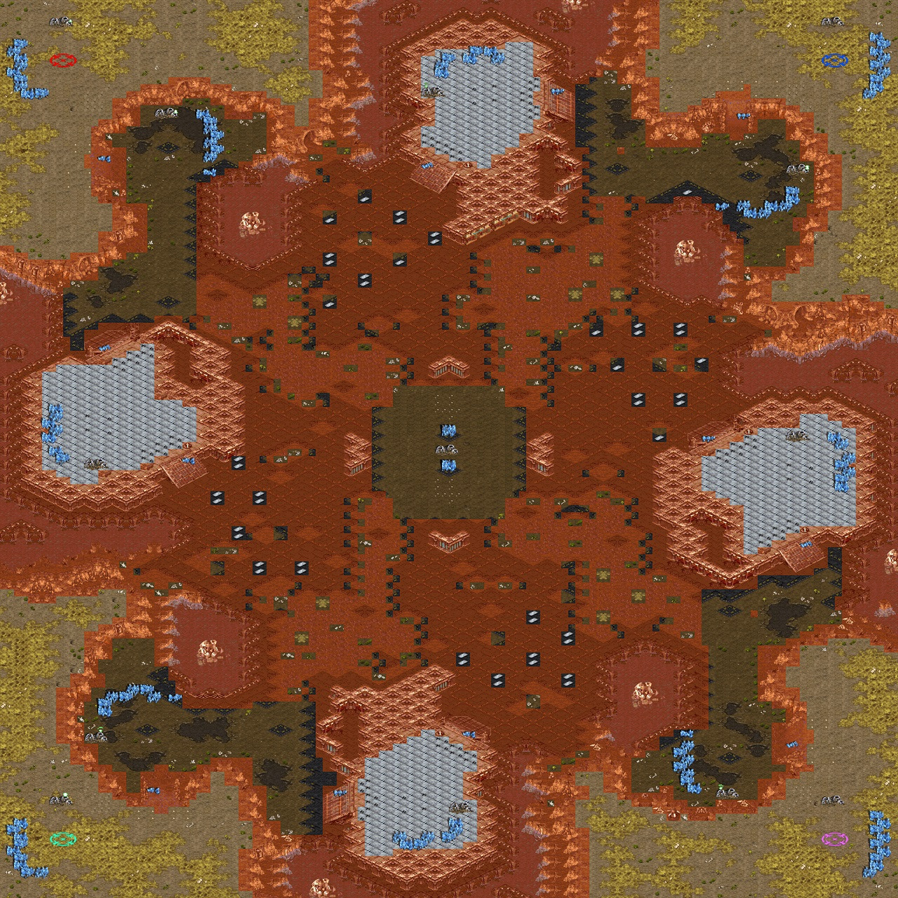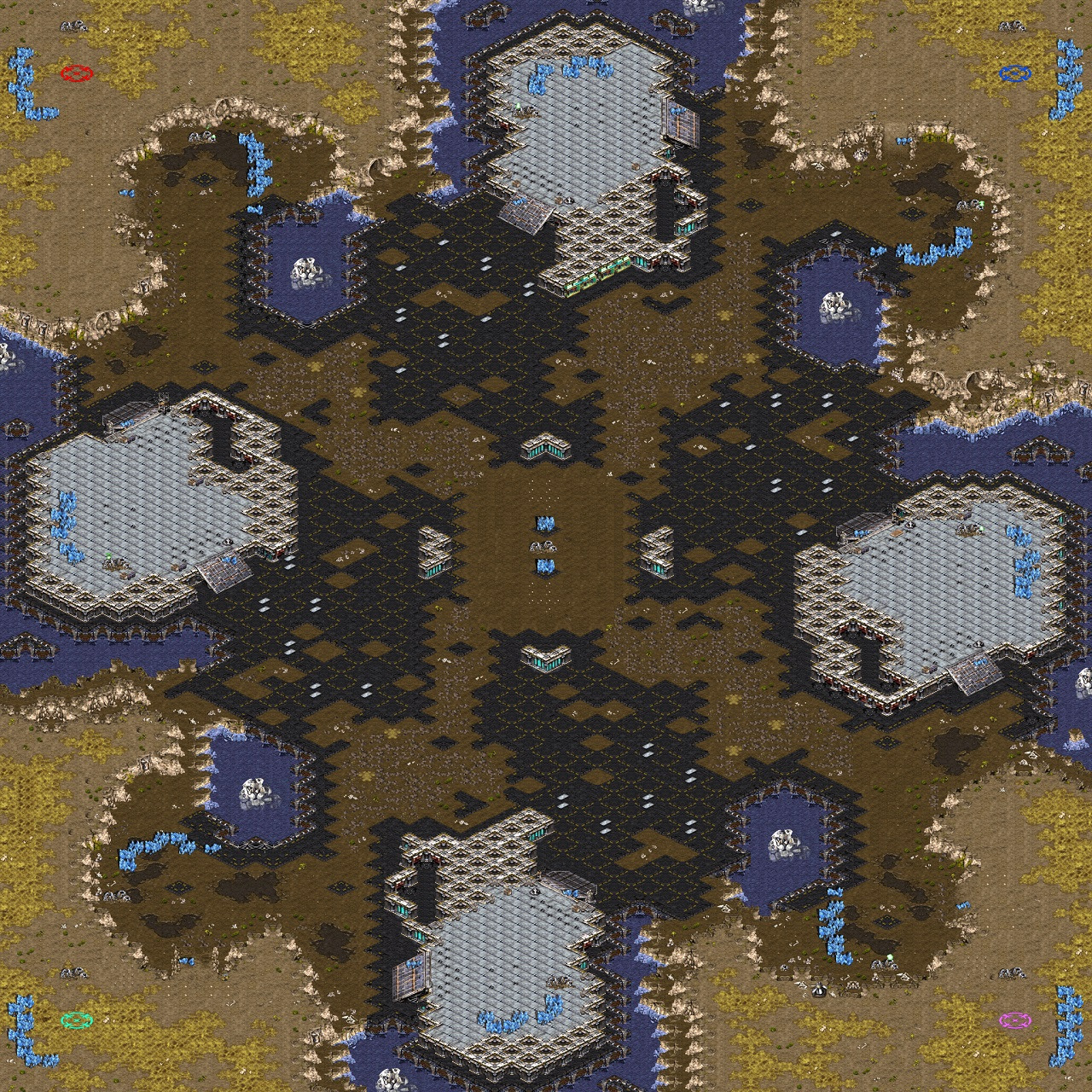 - 맵에는 비어 있는 공간이 많아 다른 4인용 맵보다 좁고 동선이 짧아 지상 공격이 힘을 더 받을 수 있다.