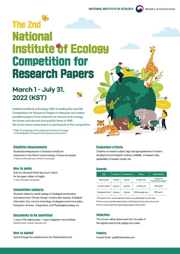 National Institute of Ecology (NIE) is holding the 2nd NIE Competition for Research Papers to discover and