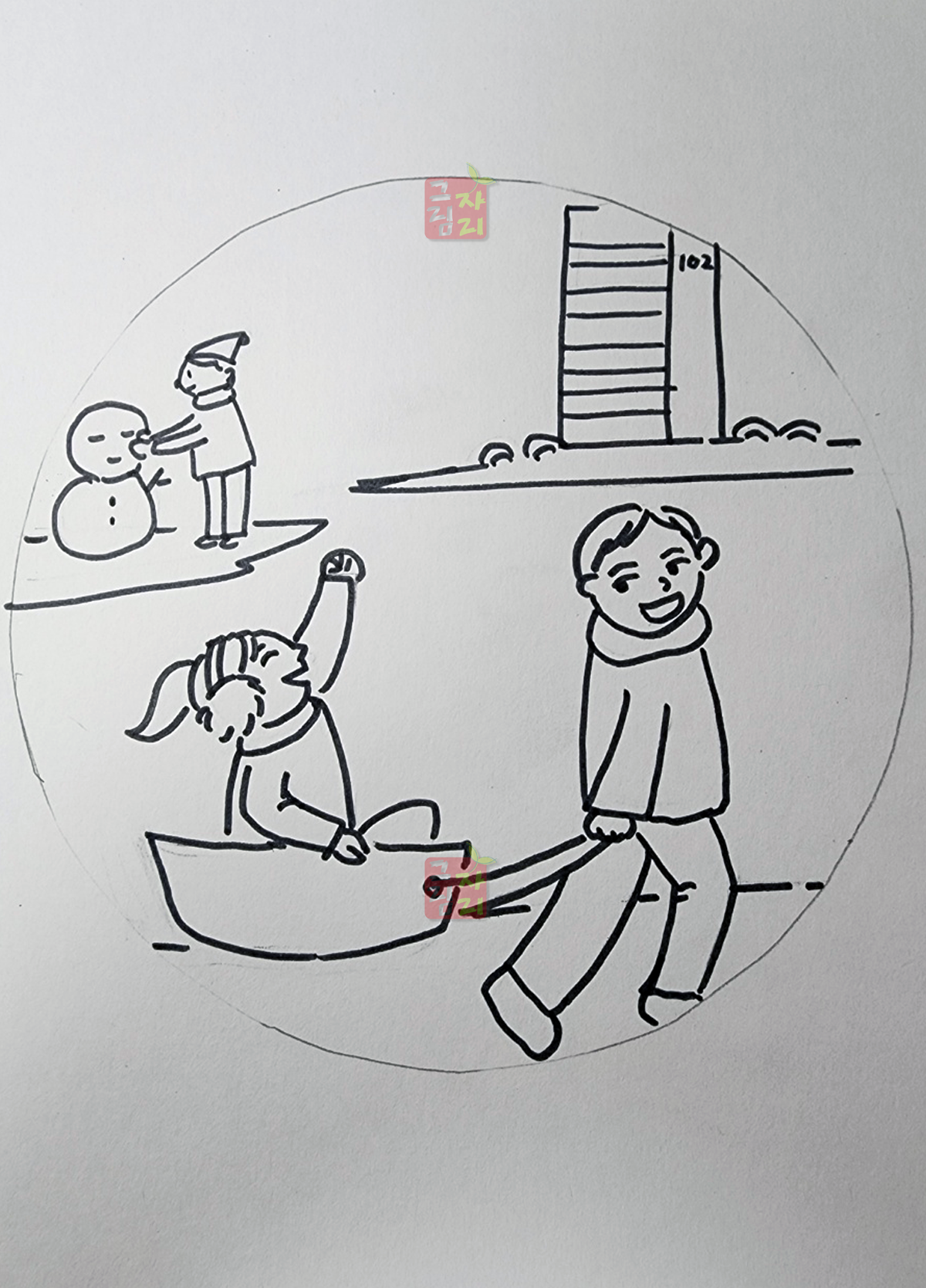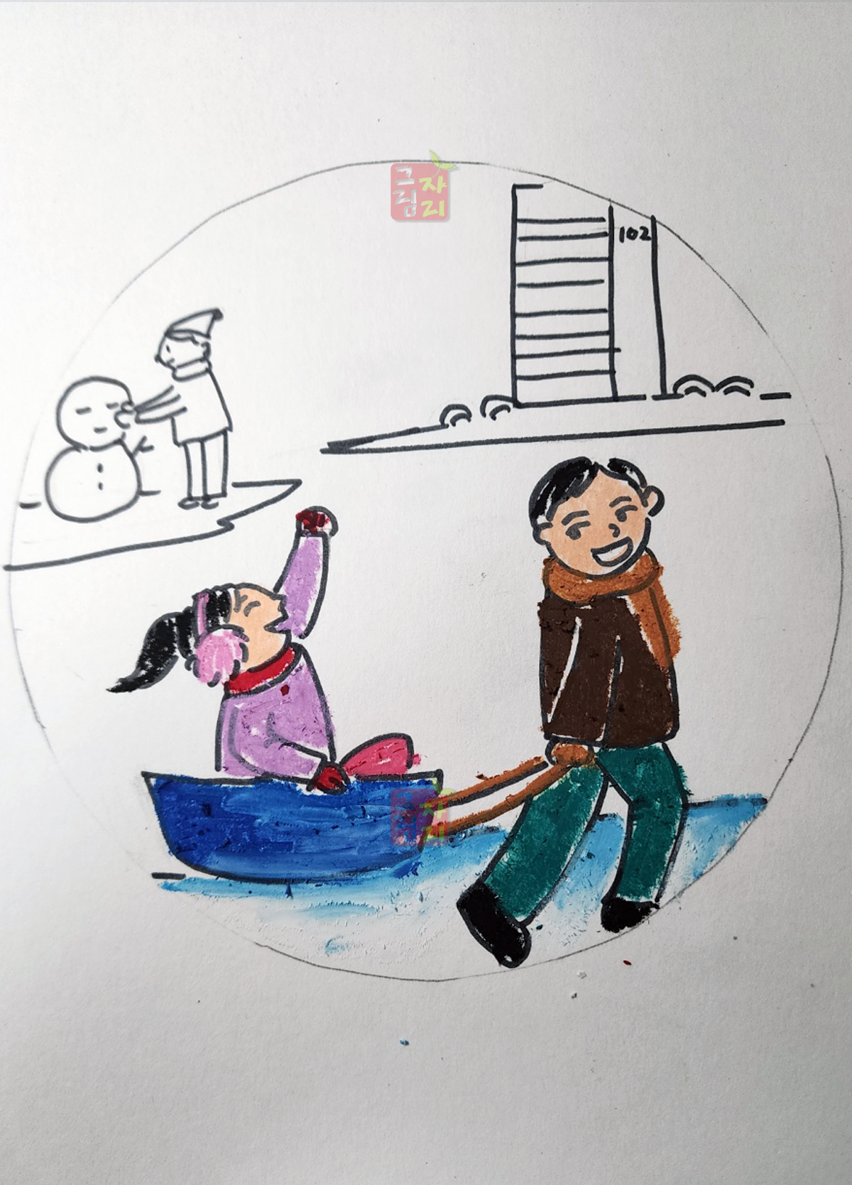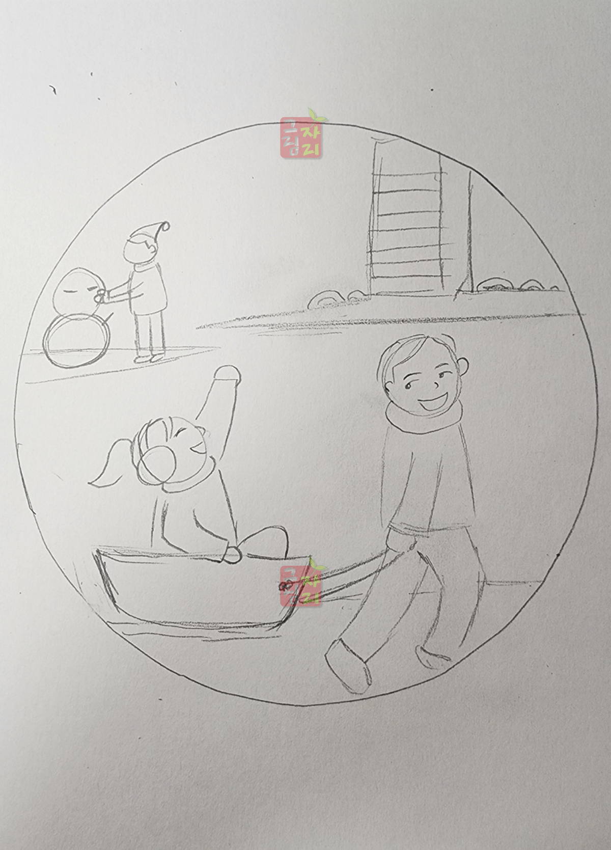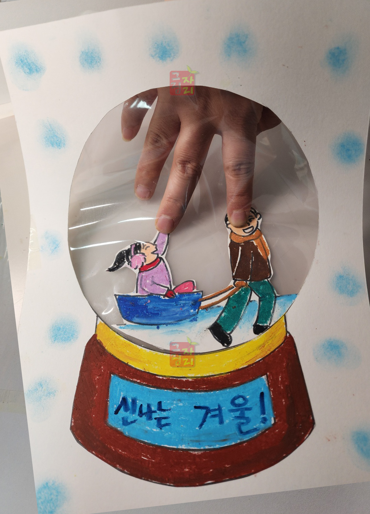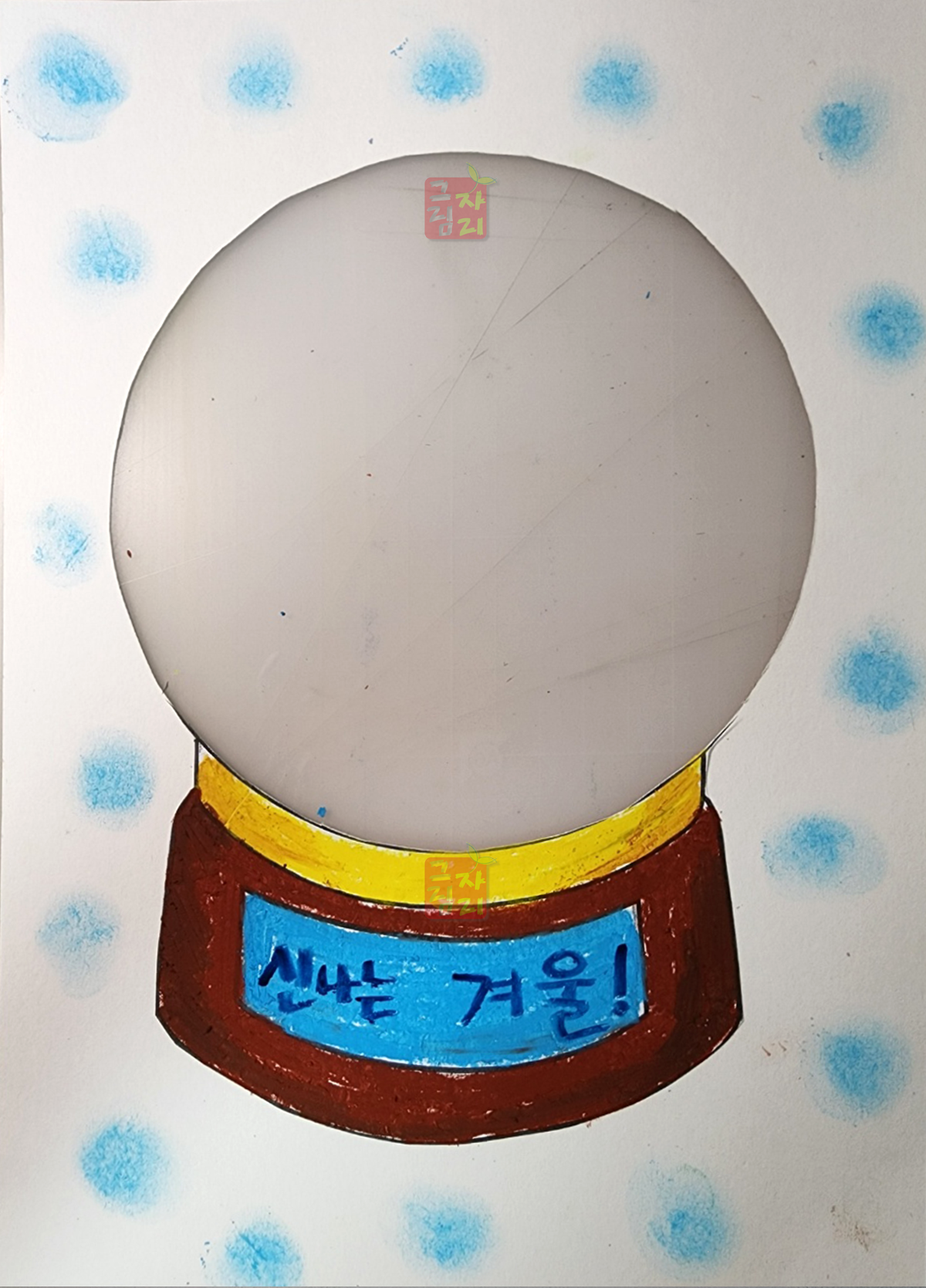 | <수업 의도> 눈 오는 풍경과 사람의 움직임 표현 등 다양한 형태력 키울 수 있는 수업으로 계절에 맞게 옷차림과 배경을 표현하도록 지도합니다. 유독 겨울과 잘 어울리는 스노우볼은 어릴 때 한 번쯤 소인국 같은 작은 왕국이 아닐까 라는 상상을 해 보았을거예요. 상상력을 불러일으키는 스노우볼을 그리고 동그랗고 작은 겨울 세상에 어울리는 풍경을 꾸미다 보면 미술시간이 그나마 따뜻하게 느껴지지 않을까요? | |