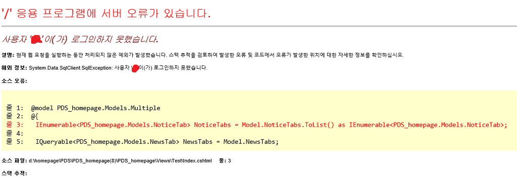 찾아보니 web.config 파일에 db 의 비밀번호가 포함되어있지 않아서 그런 것 같던데.