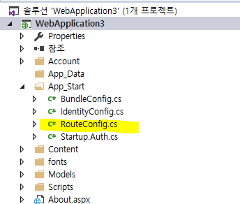 즉, http://www.daum.net/asp.aspx?num=1 이렇게 된 url 을 http://www.daum.net/asp/1 처럼 가능하게 끔 routing 기능을 제공해 주죠. 그래서 이런 작업을 App_Start 폴더 내부에 RouteConfig.cs 파일이 존재합니다.