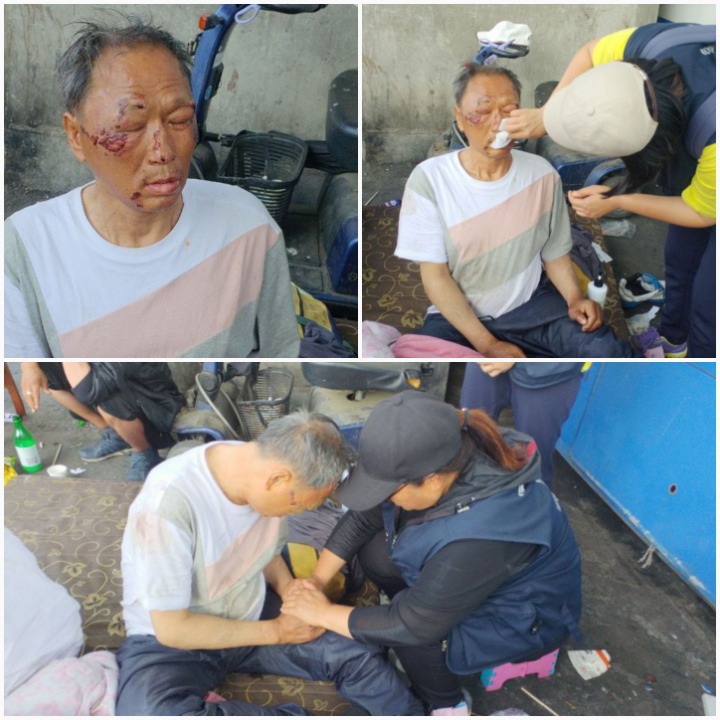 그분이 얼굴이고 온몸이많이 다쳤다고