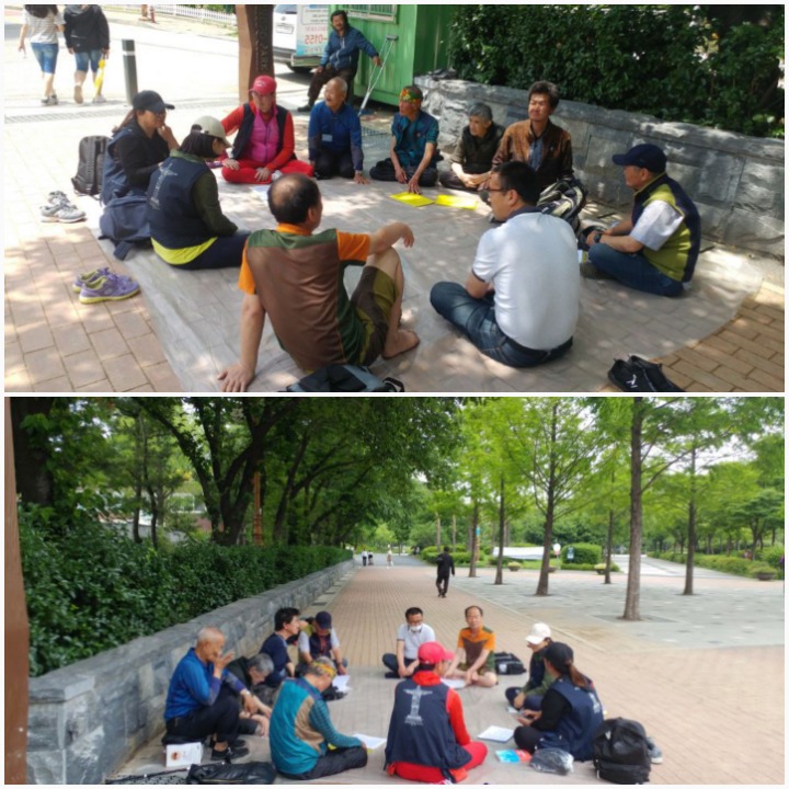 공원에 도착해서 흩어져있는 나그네 님들을 만나서