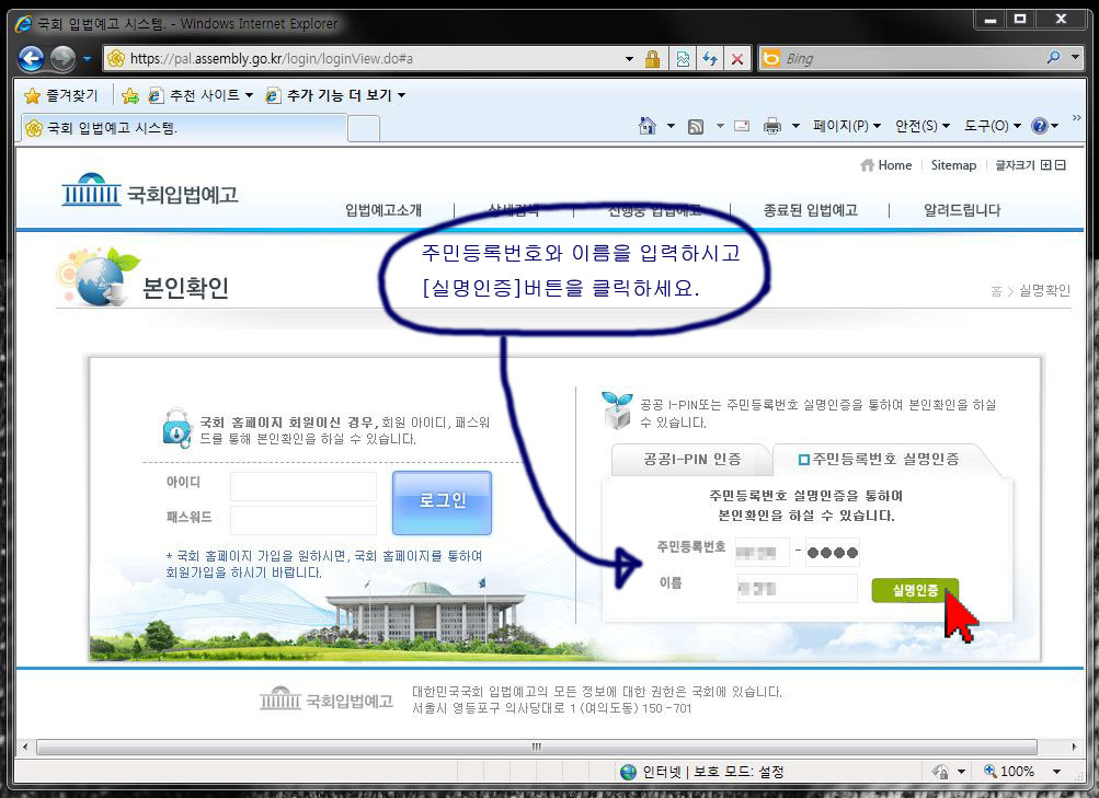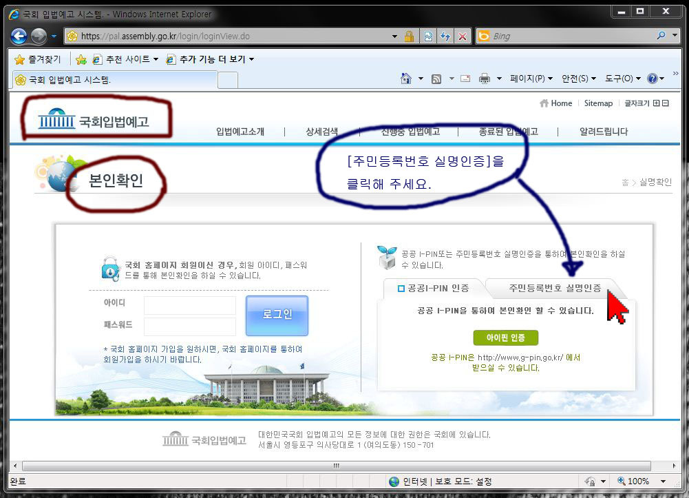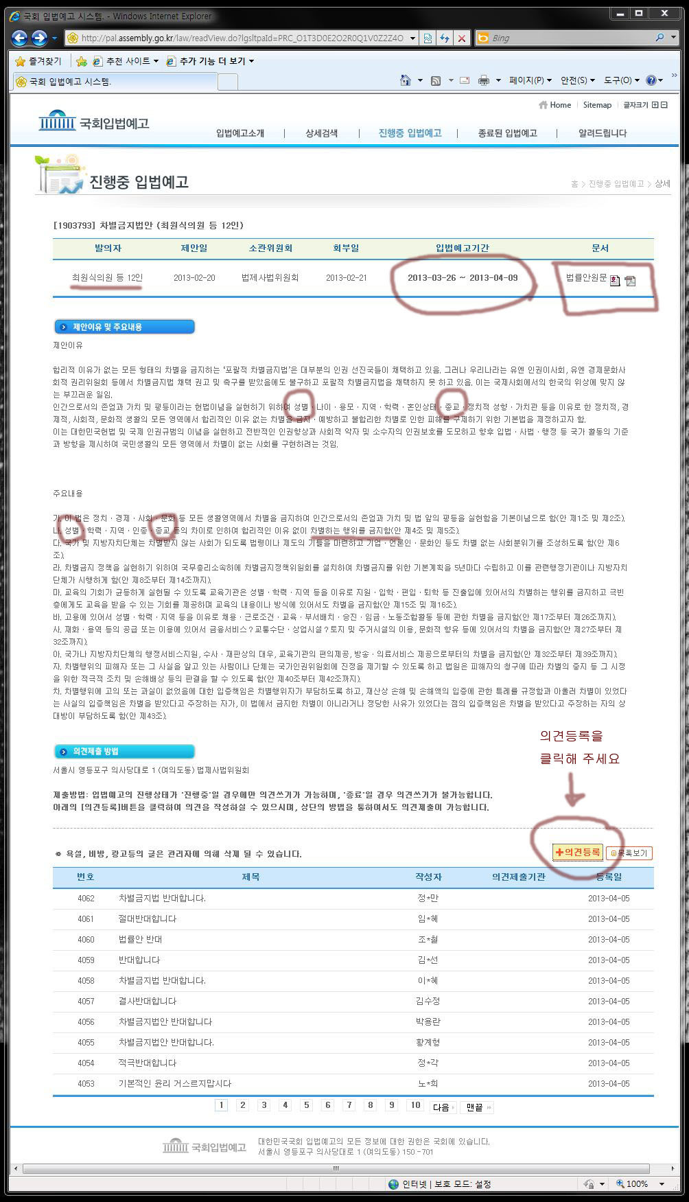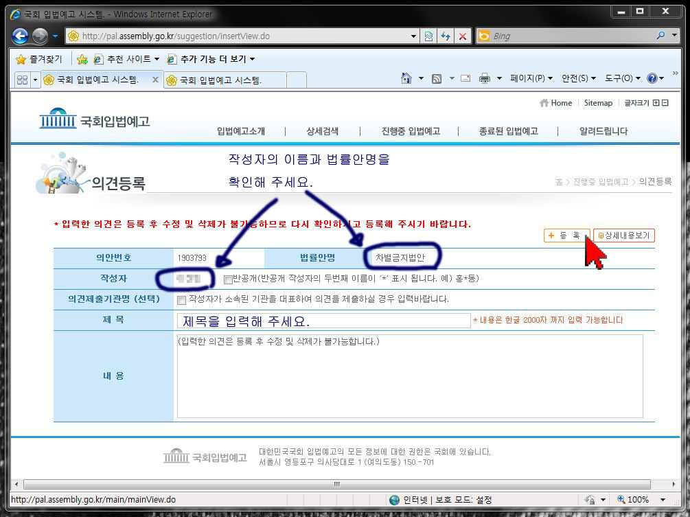 아래 웹페이지 주소를 클릭하시고 반대의견을 등록해 주십시오.