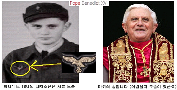 베네딕토 16세는 독일 출신으로 10대때 나치 소년단(히틀러 유겐트)에 가입해 활동하던 인물이었으며