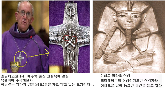 이번에 새로 선출된 로마 카톨릭의 교황 프란치스코 1세의 목걸이에서는 거짓의 자식들답게
