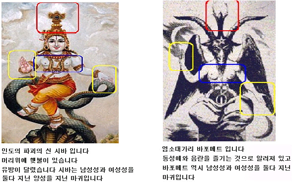 잠깐 인도의 최고의 신 시바와 바포메트(사탄)을 비교해 보겠습니다