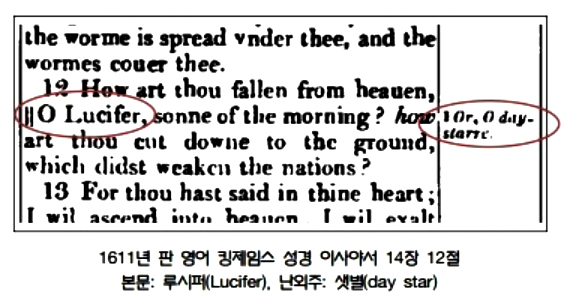 <루시퍼>의 뜻인 day star라고 직접 번역(벧후1:19)하기도 했다는 것을 볼 수 있습니다.