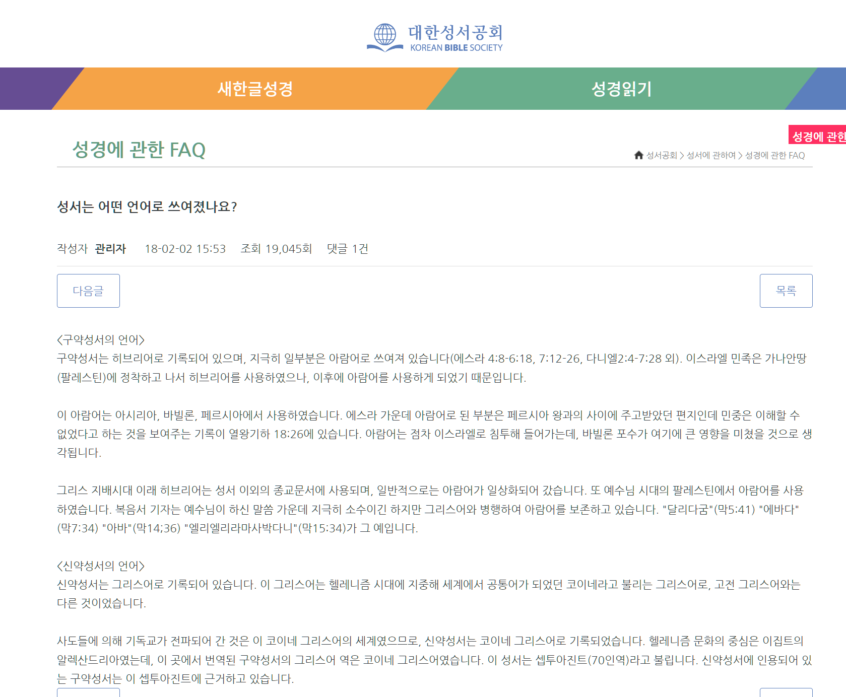 이는 98년 말 2,212개에 비해 21개가 늘어난 것이다. 성경은 단편이 먼저 번역된 다음 신약과 구약의 순서를 거치는 것이 일반적이다.