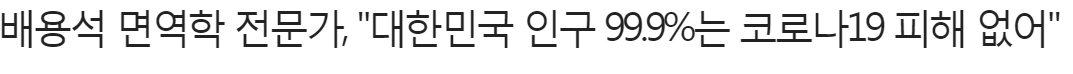 서울대 식품공학과를 졸업하고 서울의대 미생물학교실 연구원 및 펜실베니아 대학 이식외과를 거쳐 삼성서울병원 내분비내과 연구원을 지낸 면역학자인 배용석 씨는 6일 본지와의 인터뷰를 통해 코로나19가 전 국민을 사회적 거리두기 등으로 통제하고 전국민이 백신을 맞아야 하는 등의 심각한 수준이 아니라고 밝혔다