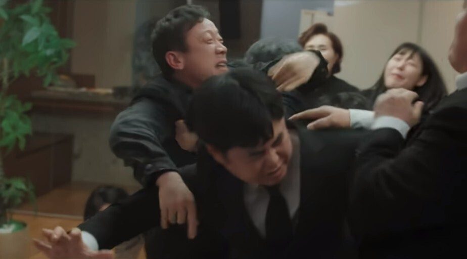 형제간의 재산분쟁에서 폭력을 사주하고 법정에서 거짓 증언을 하는 모습입니다.