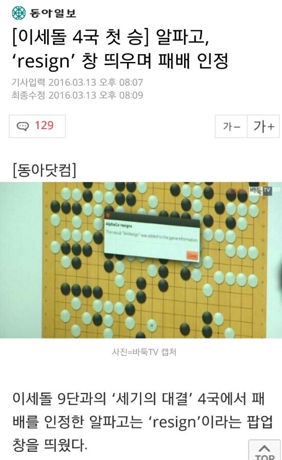 그와 별개로 인공지능은 자아가 생겨도 불완전할 것으로 저는 느껴집니다. 왜냐면 성경에 인공지능에 대한 언급이 없기 때문입니다. 그리고 실제로 이세돌과 알파고의 대국에서 알파고는 불완전한 모습을 많이 연출했습니다. 체스와 달리 바둑은 그 경우의 수가 훨씬 많기 때문입니다.