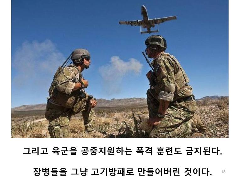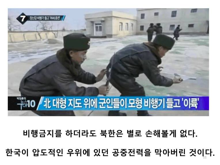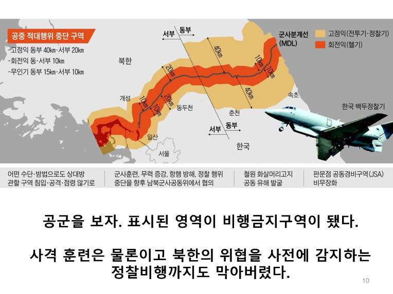 공군은 비행금지 영역을 만들어서 훈련은 물론 정찰비행도 금지시켰다. 공군과 정찰 전력에서 압도적으로 우위에 있던 우리에게만 치명타다. 그리고 육군을 지원하는 폭격훈련도 금지된다.