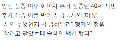 기저질환 없이 건강하던 40세 시민이 코로나19 백신 추가 접종(부스터샷) 접종 이후 이틀 만에 사망했다는 안타까운 청원이 올라왔다.