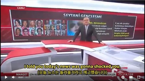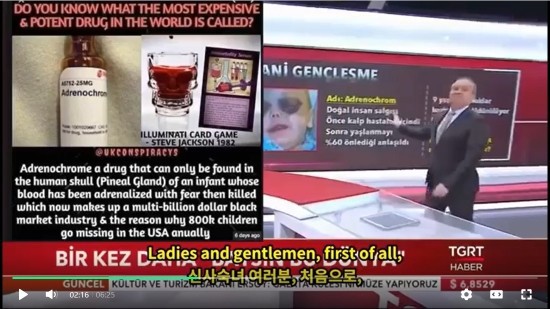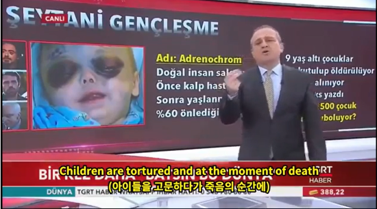 아래는 이처럼 제조 과정 자체가 사악한 아드레노크롬이 어떻게 만들어지고 우리가 잘 알고 있는 유명인사들에게 유통되고 있는 지를 고발한 터키의 한 TV 시사 프로그램을 번역한 것이다.