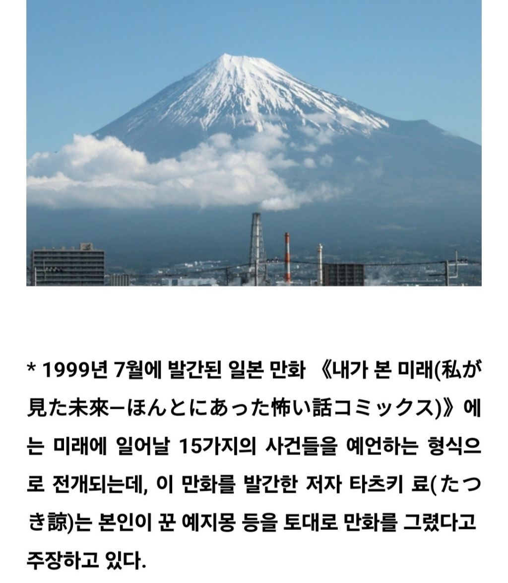 내가 본 미래? 일루미나티의 Predictive Programming? 작성자무명이|작성시간25.01.28|조회수228 목록 댓글 1 글자크기 작게가 글자크기 크게가 1신 >> “올해 7월 대재앙 터진다”…‘2011년 동일본 대지진’ 맞춘 만화가, 충격 예언2신 >> 동일본 대지진 적중한 일본 만화가..."올해 7월 대재앙 온다"3신 >> "불안불안한 '후지산' 진짜 폭발하면 이렇게 된다"…섬뜩한 전망 보니 나무위키에 소개된 이에 관한 내용들을 잠시 살펴보자.[출처]내가 본 미래? 일루미나티의 Predictive Programming?1신>> “올해 7월 대재앙 터진다”…‘2011년 동일본 대지진’ 맞춘 만화가, 충격 예언 2신>> ...blog.naver.com 다음검색 현재 게시글 추가 기능 열기 북마크 공유하기 신고 센터로 신고 댓글 댓글 1 댓글쓰기 답글쓰기 댓글 리스트 작성자무명이 작성자 본인 여부 작성자 | 작성시간 25.01.28 (25.01.28 방월석 목사 게시글)만약 일본에 대재앙이 닥친다면 한국에도 막대한 영향을 미칠 것이다. 과연 2025년은 큰 환난과 혼돈의 해가 될 것인가. 허나 두려워할 것 없다. 모든 것은 하나님의 통제하에 있기 때문이다. 사탄, 일루미나티가 아닌 하나님이 역사의 주관자 되신다. 주여, 큰 환난과 박해 중에도 은혜와 긍휼을 베풀어 주소서! 마라나타. 이미지 확대 댓글 전체보기