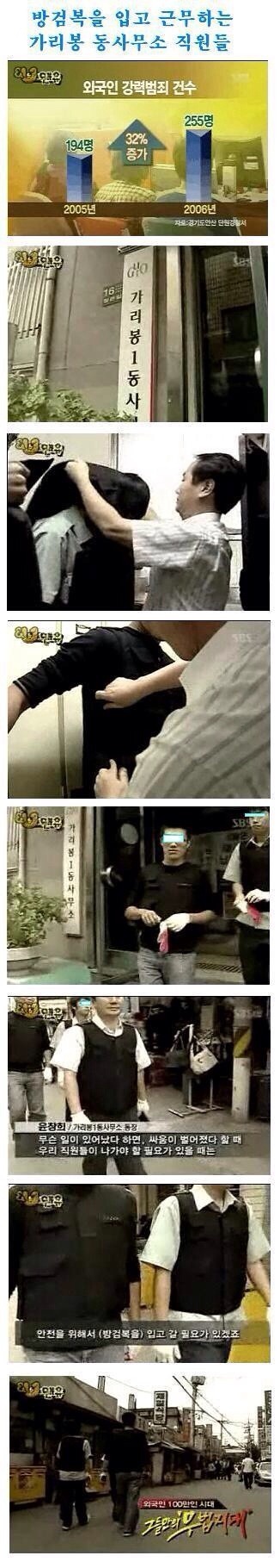 문제는 중국 교포들간 크고 작은 다툼이 흉기사용과 집단폭행으로 확산되고 있다는 점이다. 요즘들어 20~30대 젊은 청년층이 빠르게 대림동 지역사회로 유입되면서 조직적·규모화되는 양상을 보이기도 한다. 그렇다보니 대림파출소 직원들은 한시도 긴장을 늦출 수 없다. 테이저건(전기충격기)에 가스총, 칼을 막아내는 방건복 착용은 기본이다.