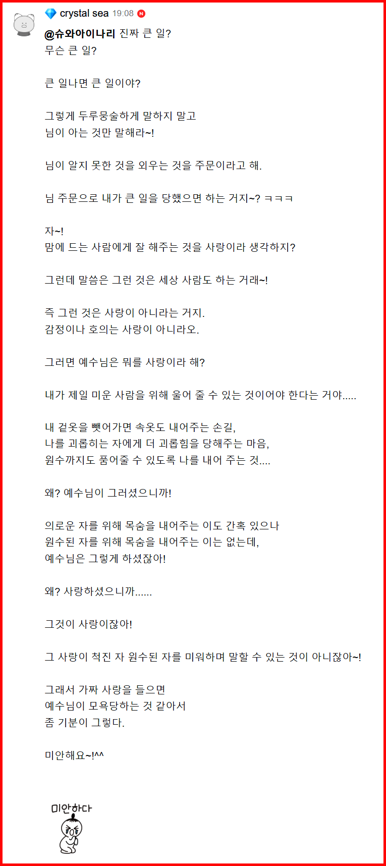 답댓글 작성자crystal sea 작성자 본인 여부 작성자 작성시간 22.03.03 그래서 미안하다고 하지 않더냐~!