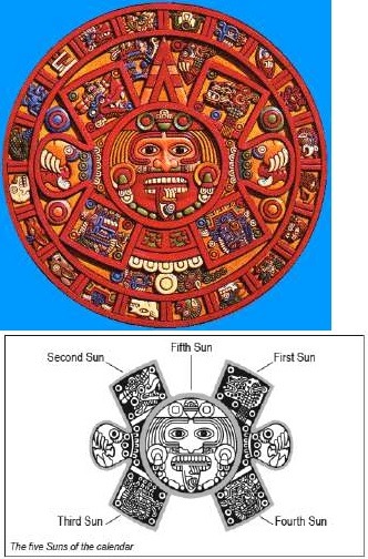 아즈텍 문명, 마야 문명에서는 공통적으로 다섯 개의 태양의 시대에 관한 전설이 있습니다.