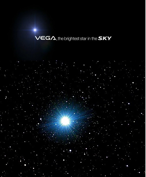 광고에서도 강조하듯이 베가별은 청색거성이며, 굉장히 밝은 별입니다.