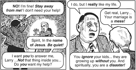 래리 집사 : "악령아! 너를 쫓아 내노니, 가라! 내게서 나오라! "