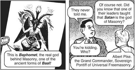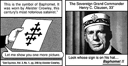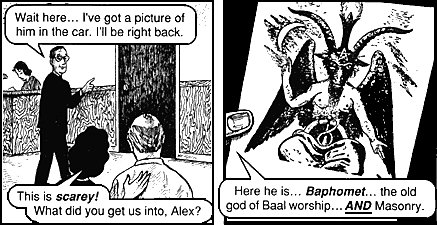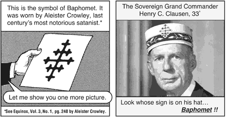 헌트 목사 : "이게 '바포멧(Baphomet l 사탄을 말함)'이요. 메이슨의 배후에 있