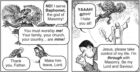 래리 집사 : "주 예수님, 제 삶을 관장해 주옵소서. 사악한 메이슨으로부터 고