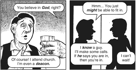 래리 : "물론! 난 교회를 나가고 있지. 난 집사이기도 해."