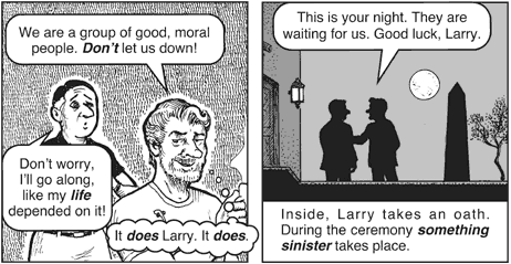 비밀리에, 래리는 메이슨에 입회해 맹세식을 가졌다.