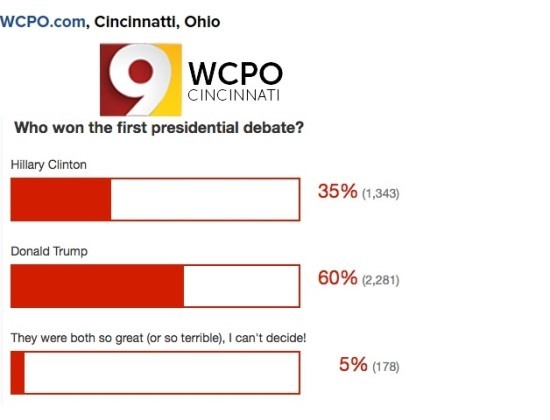 나머지 25개 이상의 언론 매체들이 도널드 트럼프가 이번 토론에서 이겼다는 여론 조사 결과를 발표하였다.